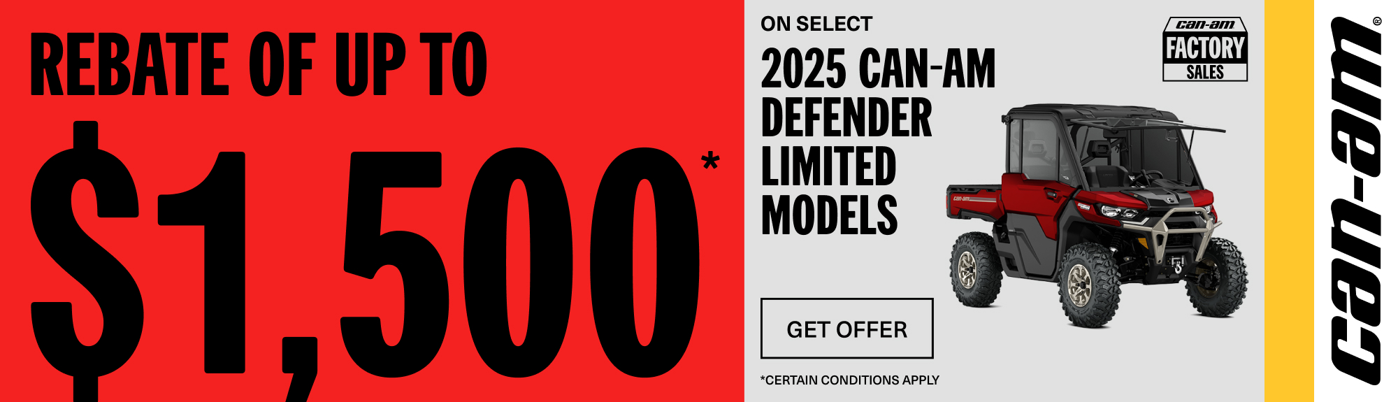 Rebate of up to $1,500 on select 2025 Can-Am Defender Limited models